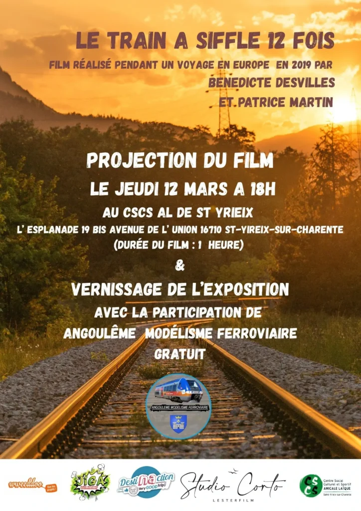 Le centre social de Saint-Yrieix a accueilli la projection du film « Le Train a sifflé 12 fois », réalisé par Bénédicte Desvilles et Patrice Martin. Ce carnet de voyage européen, qui aborde la mobilité internationale, a été complété par une exposition de l’association Angoulême Modélisme Ferroviaire. ( source Charente libre Â